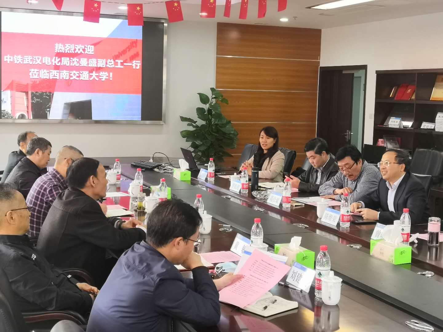 On November 19, Shen Mansheng, deputy chief engineer of China Railway Wuhan Electrification Bureau Group Co., LTD. (hereinafter referred to as Wuhan Electrification Bureau) and his six colleagues visited National Rail Transit Electrification and Automation Engineering Technique Research Center (NEEC) and the School of Electrical Engineering.